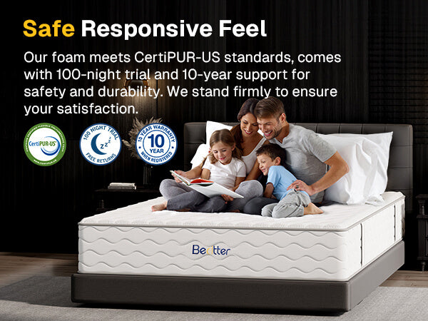 Crafted with an antifungal, dust mite-resistant topper, OEKO-TEX® certified hypoallergenic materials, and bamboo charcoal fibers, this mattress creates a cleaner, healthier sleep environment. It blocks allergens, prevents odors, and naturally resists bacteria—safe for crawling babies, napping pets, and anyone with sensitive skin or allergies.